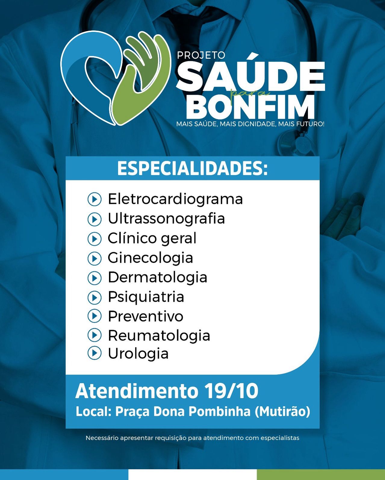 A comunidade do Alto da Maravilha, Mutirão e região será contemplada, no dia 19 de outubro, com o Projeto Saúde para Bonfim, uma ação conjunta que reunirá diversas especialidades médicas em um grande mutirão de atendimentos gratuitos.