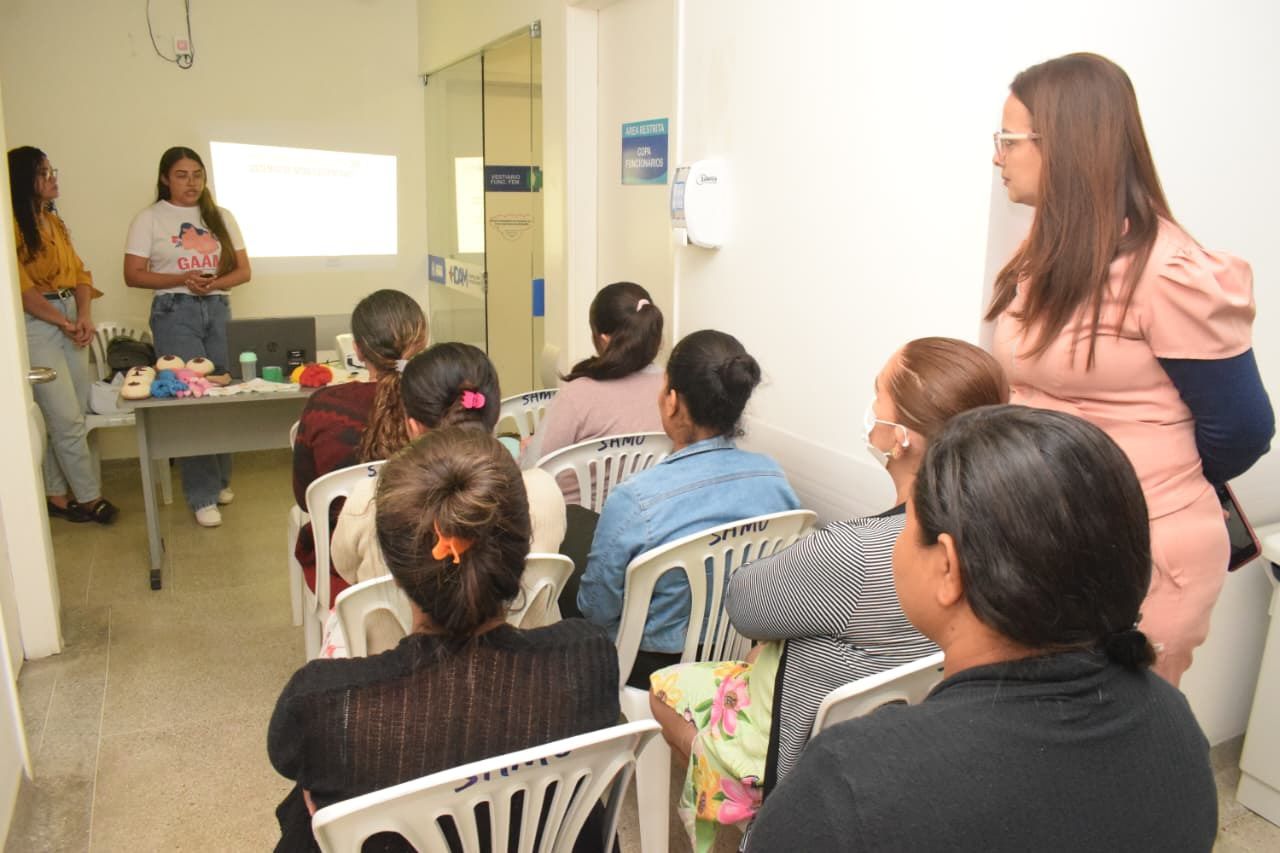 Durante o encontro, foram abordados temas como os benefícios e vantagens do aleitamento materno, a fisiologia da amamentação, a postura adequada da mãe e do recém-nascido, além de orientações sobre manejo e possíveis intercorrências.
