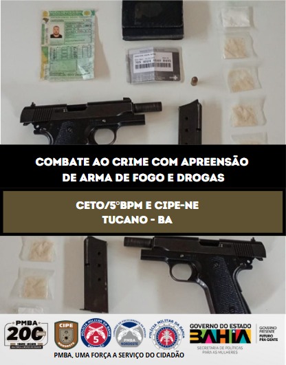 Em uma ação conjunta do 5°BPM com apoio da CIPE-Nordeste, a Guanição do 5ºBPM entrou em confronto com indivíduos armados na cidade de Tucano. Ao final se observou que um dos indivíduos escontrava-se alvejado e por isso socorrido ainda com vida para o hospital da cidade de Tucano, tendo o outro fugado no matagal. Todo material apreendido foi apresentado à autoridade policial na delegacia de Euclides da Cunha-BA.