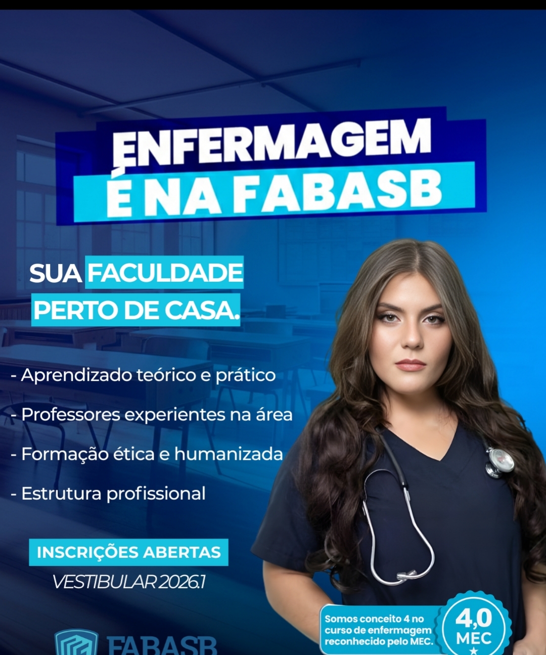 Se você deseja construir uma carreira na área da saúde, o curso de Enfermagem da FABASB oferece formação qualificada, com professores preparados e foco no cuidado humanizado.