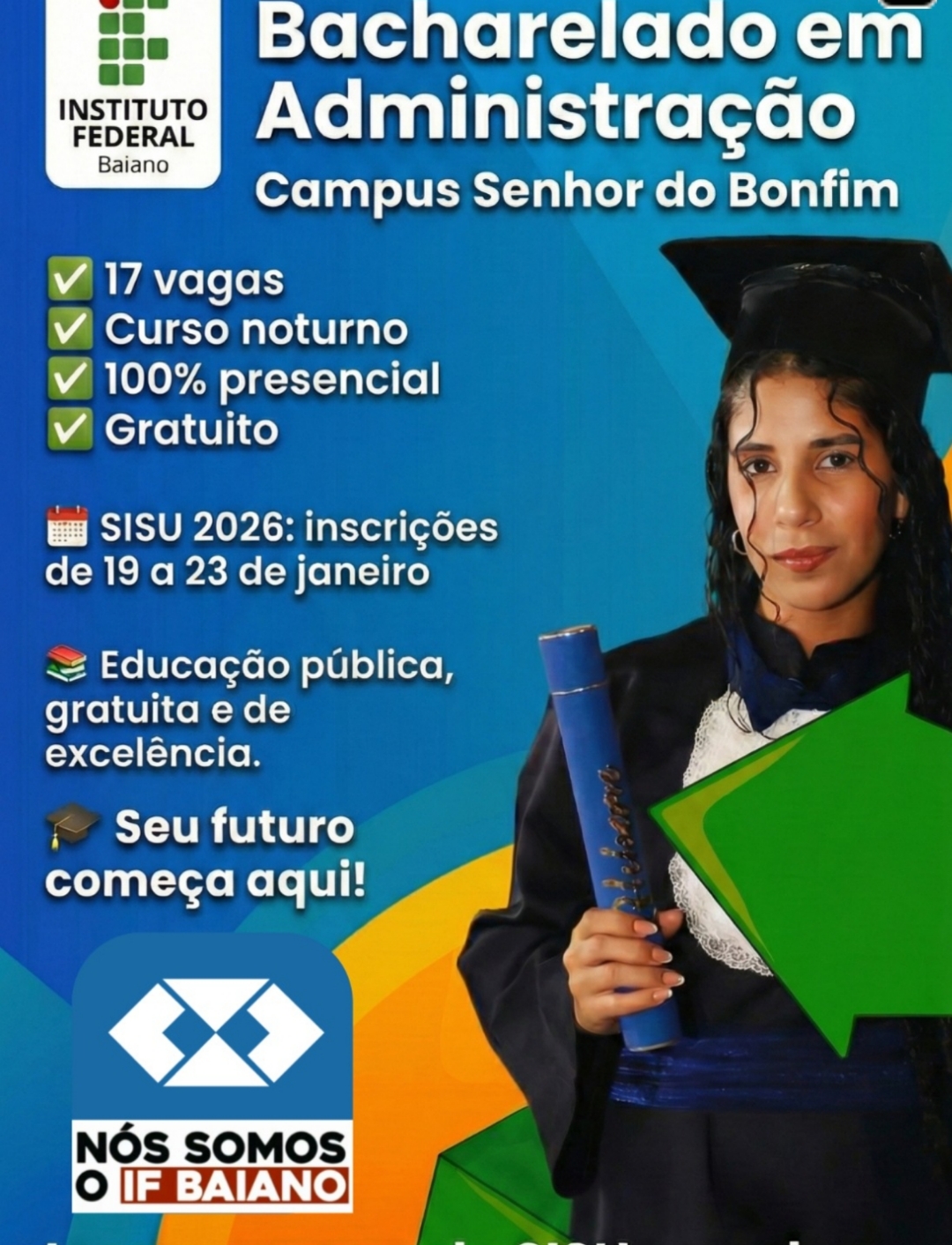 Ingressar no Bacharelado em Administração do IF Baiano é investir em uma educação pública, gratuita e de excelência, que amplia horizontes profissionais!