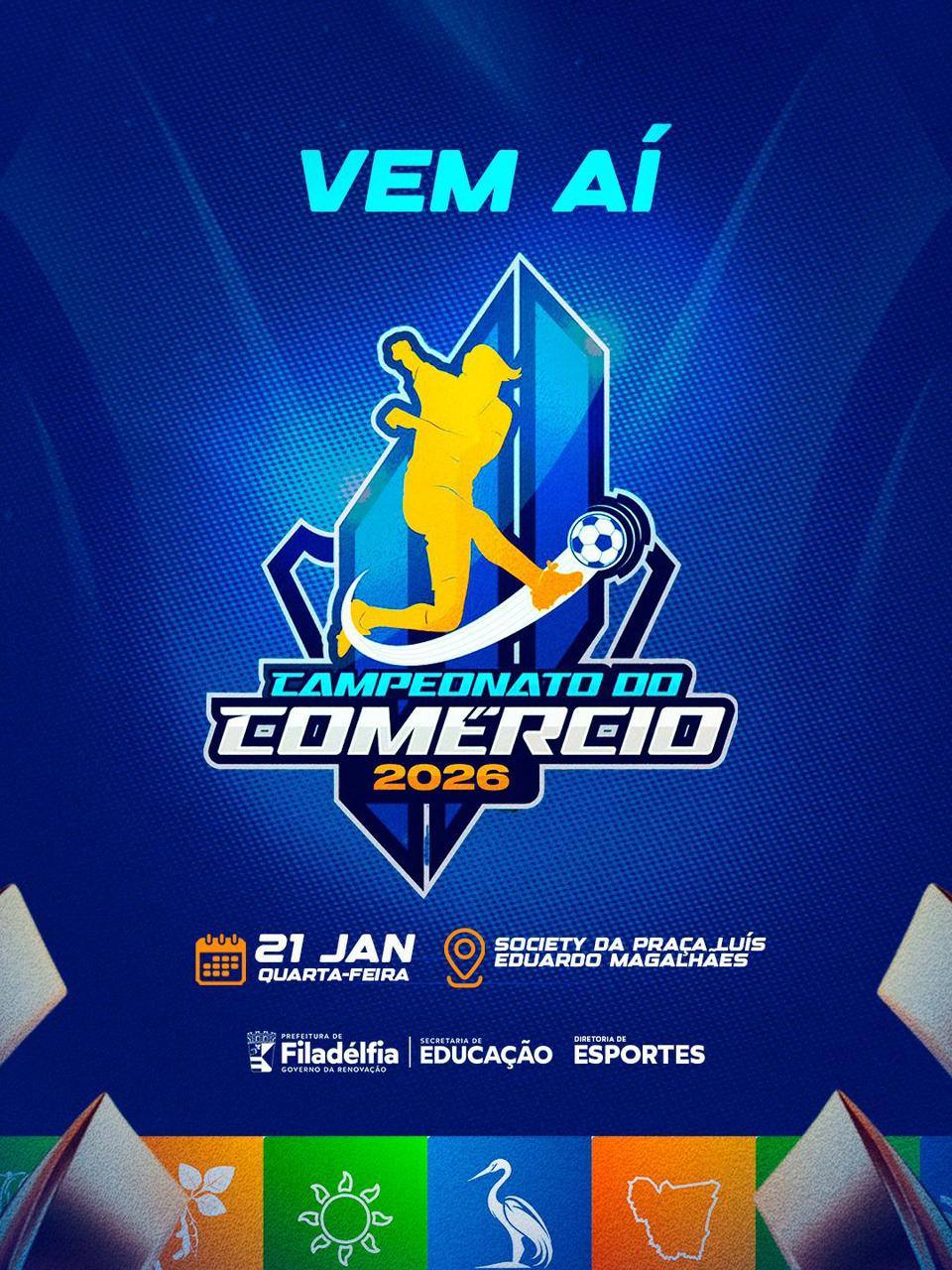 A Prefeitura de Filadélfia dá início nesta quarta-feira, 21 de janeiro, ao Campeonato do Comércio 2026, uma das competições esportivas mais vibrantes do município. A abertura oficial acontece a partir das 19h, na Praça Luiz Eduardo Magalhães, prometendo repetir o sucesso de público e organização.