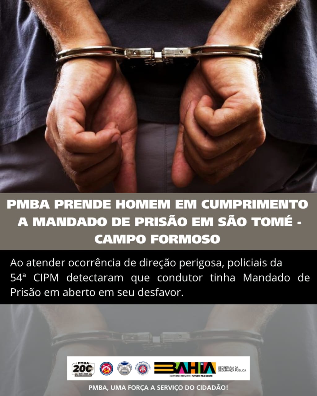 ao chegar na Delegacia Territorial de Campo Formoso, foi realizada consulta de antecedentes criminais e se constatou que o condutor possuía Mandado de Prisão em aberto em seu desfavor, sendo apresentado à autoridade policial para as providências cabíveis.