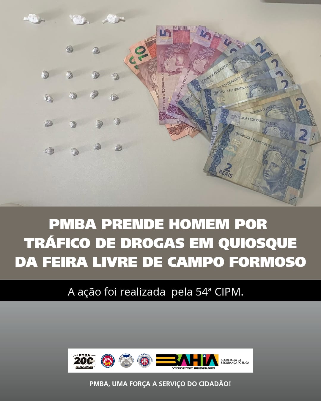 Por volta das 14h30, desta quinta-feira, 28/08, guarnição da 54ª CIPM durante rondas pela praça da feira livre de Campo Formoso – Ba, recebeu denúncia via central telefônica da unidade acerca de um intenso tráfico de drogas nas proximidades dos quiosques.