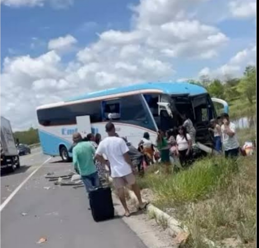 Um acidente grave envolvendo colisão frontal entre um caminhão baú e um ônibus da Viação Entram ocorreu na manhã desta sexta-feira (28 de novembro de 2025), no km 493 da BR-324 (ou BR-116, conforme relatos), próximo ao Posto Trevo, entre Tanquinho e Feira de Santana, na Bahia .Vítimas e AtendimentoDuas pessoas do caminhão morreram no local, e uma terceira ficou em estado gravíssimo; passageiros do ônibus sofreram ferimentos leves, como escoriações e dores . Equipes da Brigada Voluntária Anjos Jacuipenses, SAMU de Feira de Santana e Polícia Rodoviária Federal (PRF) atenderam a ocorrência, com feridos encaminhados para hospitais em Feira de Santana e Tanquinho . A colisão causou interdição parcial da pista nos dois sentidos .CircunstânciasAs causas exatas da batida ainda não foram divulgadas pelas autoridades . Imagens mostram os veículos arrastados para fora da pista após o impacto .(Imagens redes sociais).