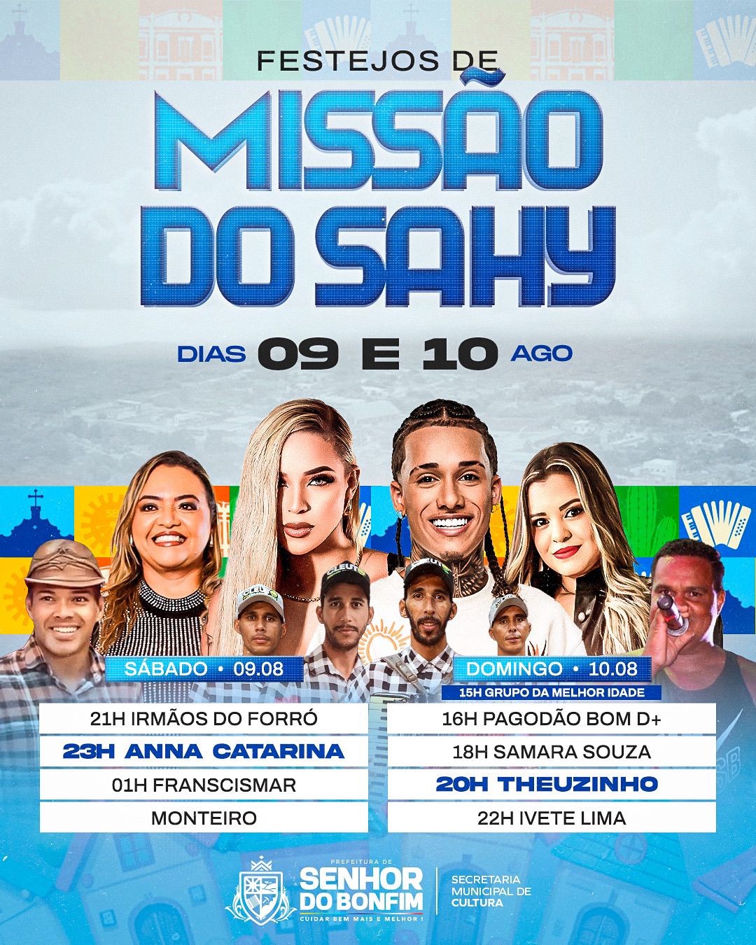 A cultura popular do interior ganha mais um grande capítulo com os tradicionais Festejos de Missão do Sahy, que acontecem nos dias 09 e 10 de agosto, no distrito de Missão do Sahy. Realizado pela Prefeitura de Senhor do Bonfim, por meio da Secretaria Municipal de Cultura, o evento promete reunir moradores e visitantes em dois dias de muita música, alegria e valorização das raízes culturais da região.
