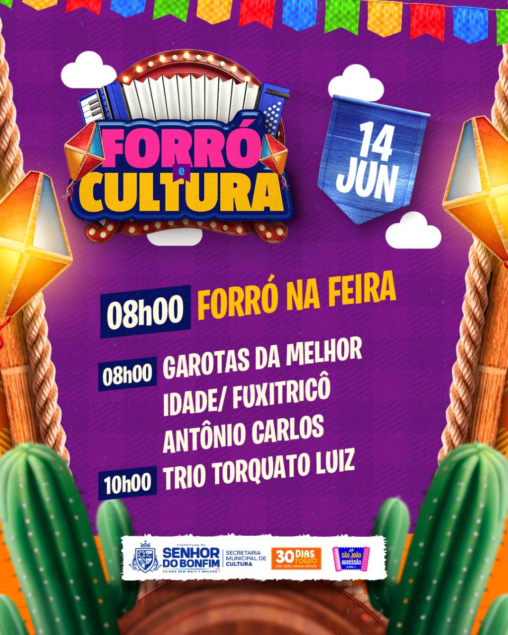 Desde o dia 24 de maio, o São João, Minha Paixão 2025 vem tomando conta de Senhor do Bonfim com muita música, tradição e alegria. E a programação segue a todo vapor! Nesta semana, a Prefeitura, por meio da Secretaria Municipal de Cultura, realiza as últimas edições do Forró dos Bairros e mais uma animada edição do Forró na Feira, levando o clima junino para todos os cantos da cidade.