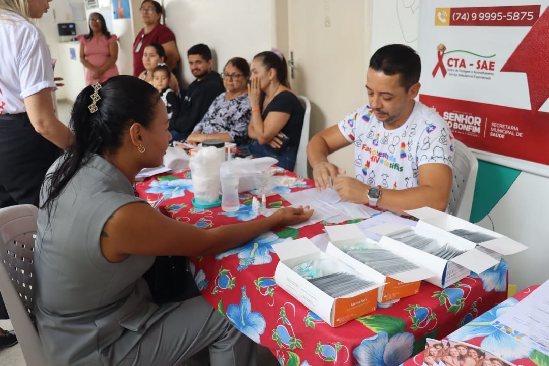 A Prefeitura de Senhor do Bonfim, por meio da Secretaria Municipal de Saúde, está realizando durante o mês de março uma série de ações educativas nas unidades da rede municipal para conscientizar a população sobre o HTLV ((Vírus Linfotrópico de Células T Humanas). Nesta quinta-feira (5), a atividade aconteceu durante uma sala de espera na ESFQ do bairro Alto da Maravilha, com orientação e oferta de testes rápidos.