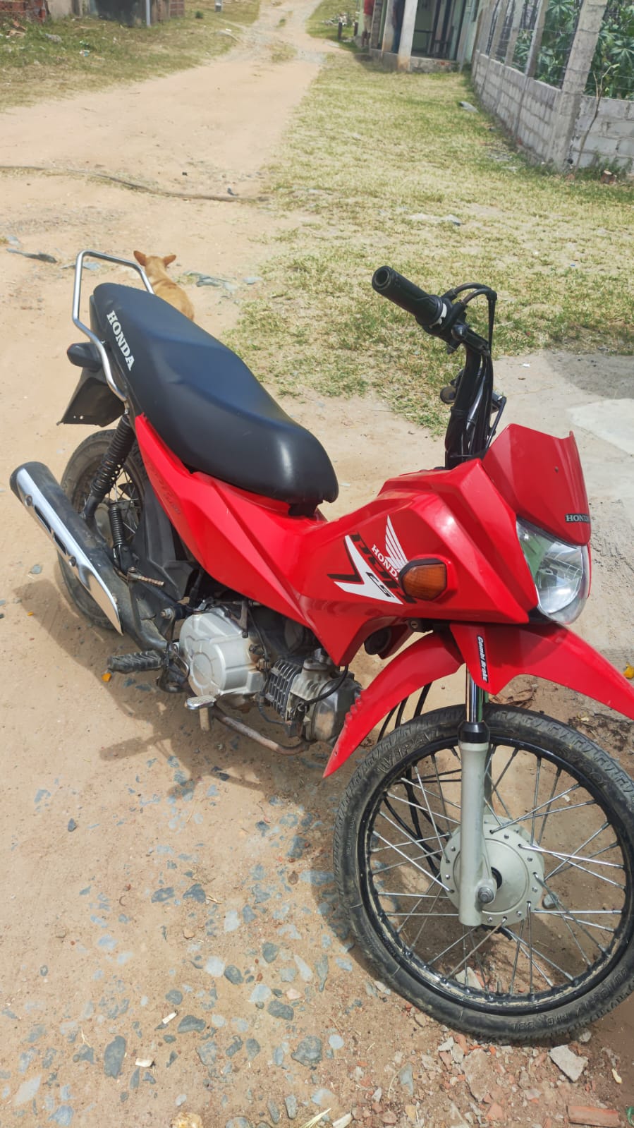 01 motocicleta Honda Pop 100, vermelha, sem placa de identificação.