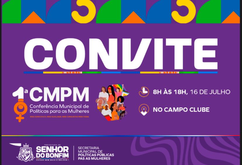 A Prefeitura de Senhor do Bonfim, por meio da Secretaria Municipal de Políticas Públicas para as Mulheres, convida você para um momento histórico de escuta, diálogo e construção de políticas públicas voltadas às mulheres do nosso município.