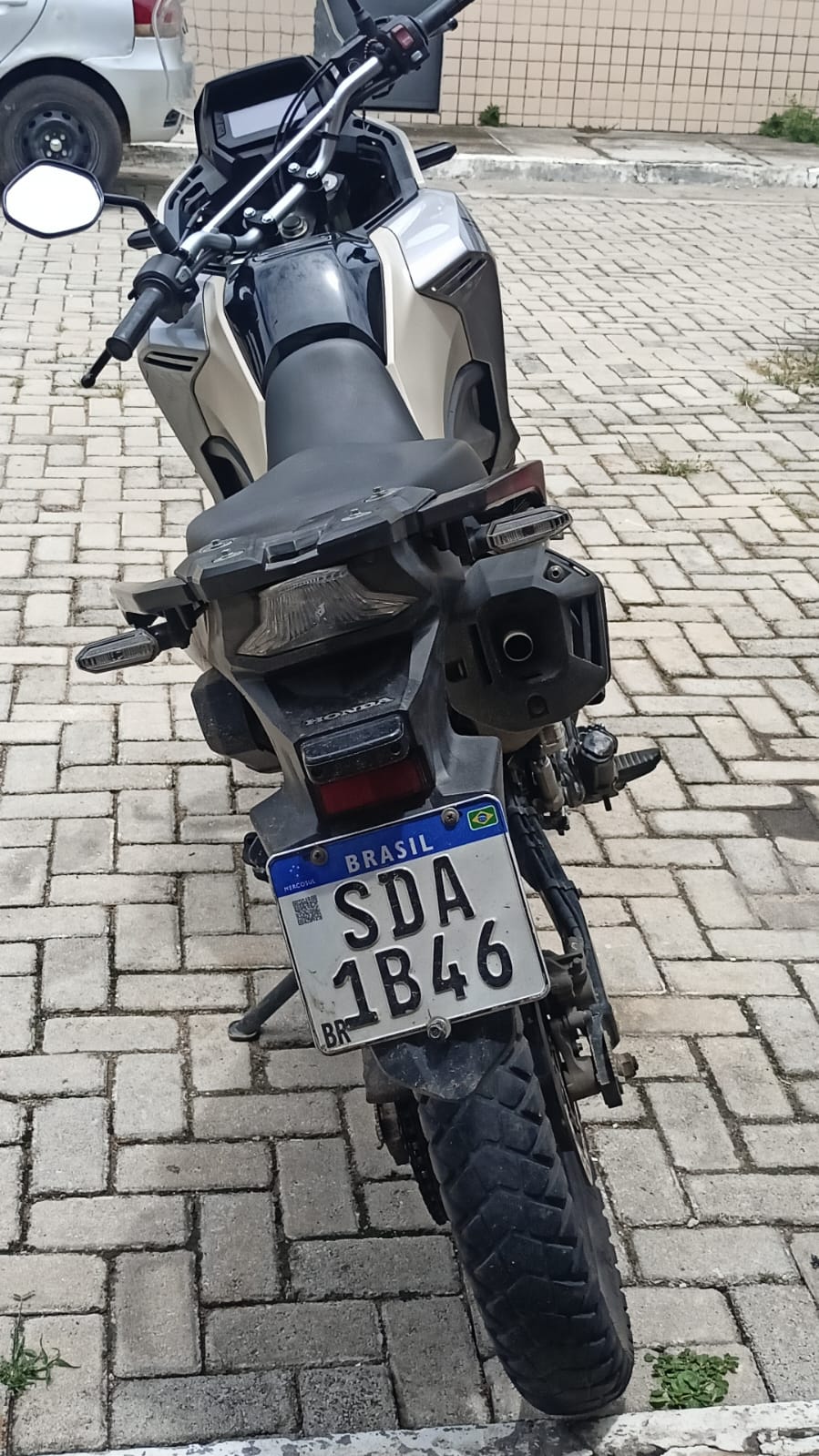 O veículo, uma Honda/XRE 300 Sahara ADV, placa policial SDA-1B46, apresentava indícios de adulteração veicular e possível clonagem de placa.