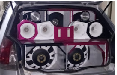 – Automóvel Fiat/Palio com som automotivo tipo paredão.