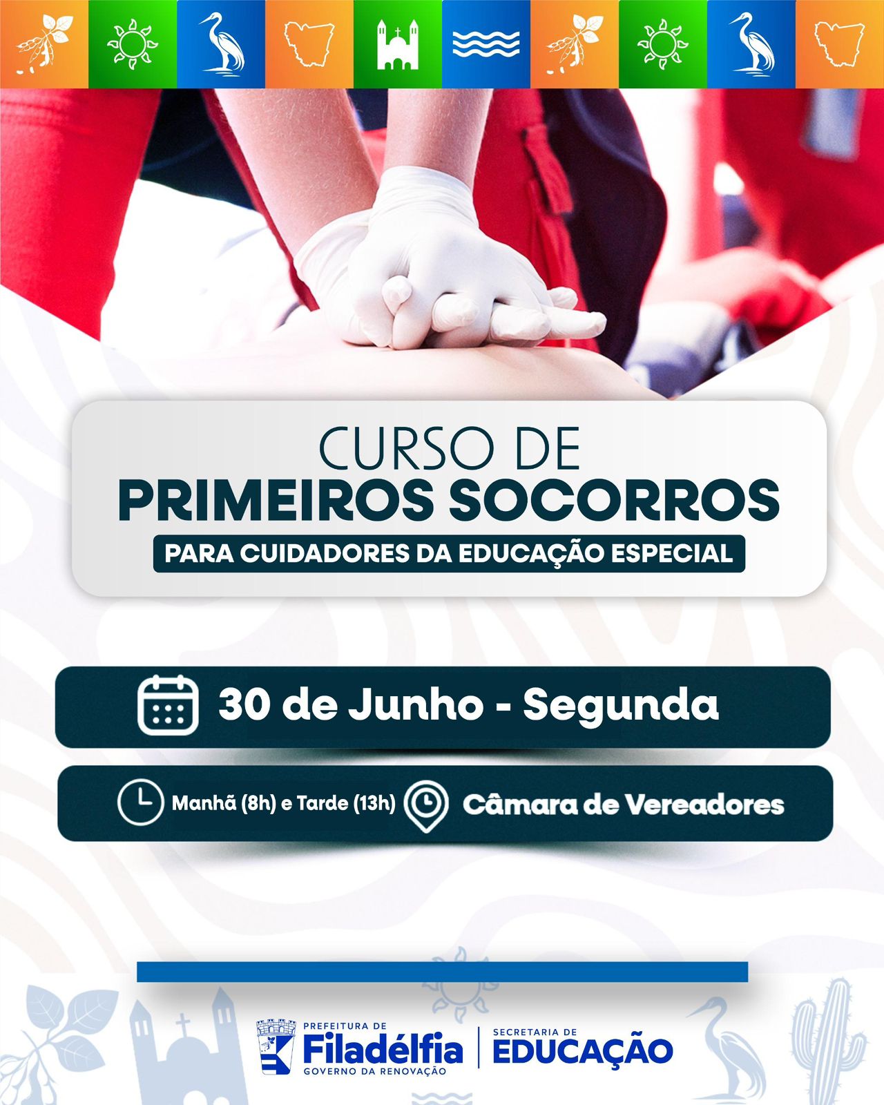 A Prefeitura de Filadélfia, por meio da Secretaria Municipal de Educação (Semed), realiza no dia 30 de junho, segunda-feira, um Curso de Primeiros Socorros voltado para cuidadores da Educação Especial.