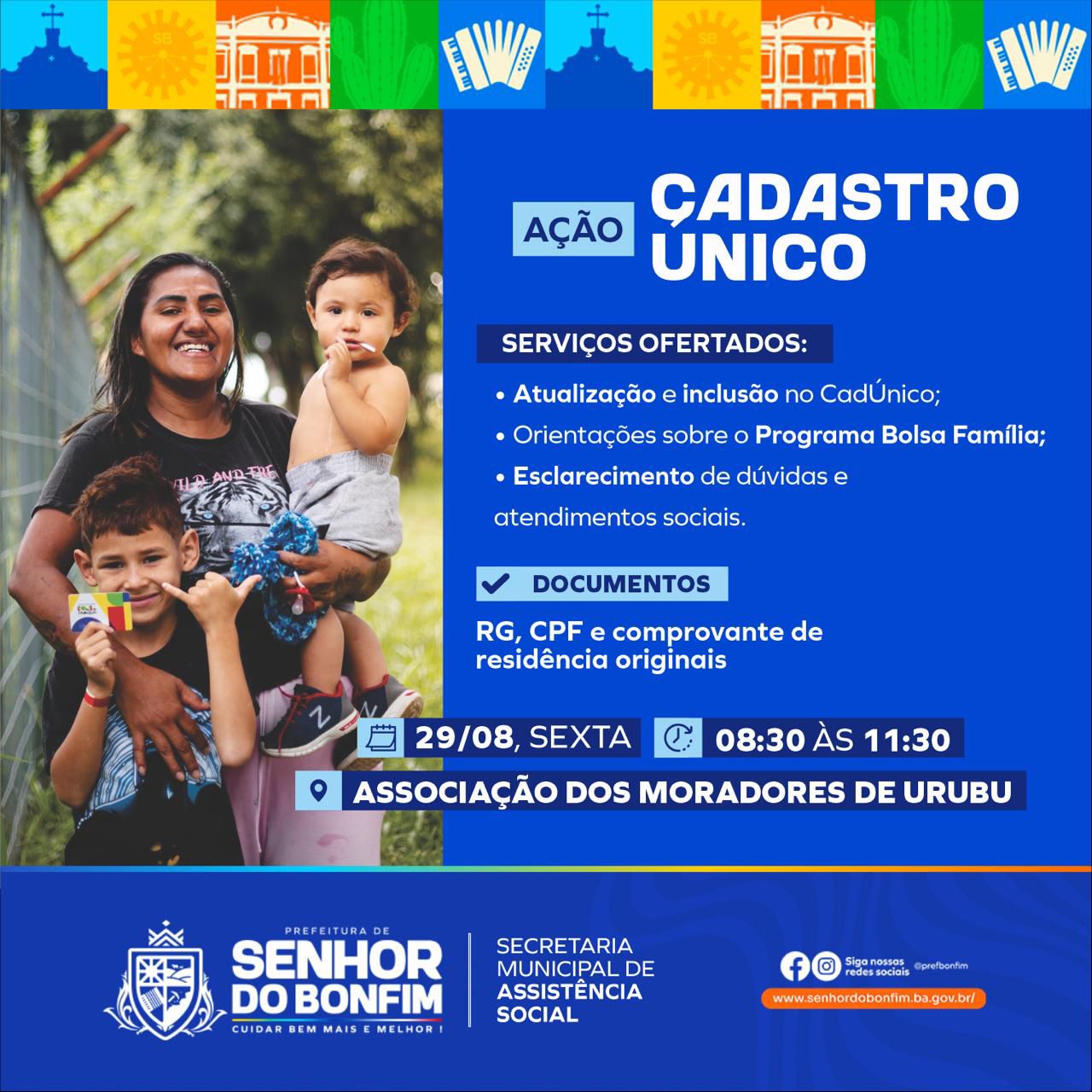 Nesta sexta-feira (29), a Prefeitura de Senhor do Bonfim, por meio da Secretaria de Assistência Social, estará promovendo mais uma edição do Bonfim Social Itinerante, desta vez na Fazenda Urubu, localizada no distrito de Tijuaçu, na Associação Comunitária.