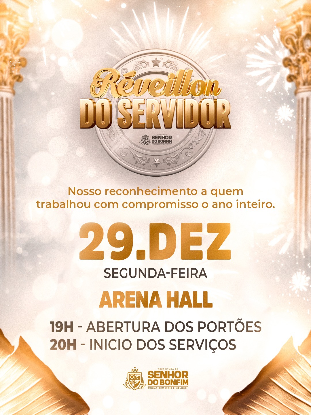 A Prefeitura de Senhor do Bonfim realiza, na próxima segunda-feira (29), mais uma edição do Réveillon do Servidor, uma celebração especial dedicada a reconhecer e valorizar o trabalho dos servidores públicos municipais. O evento acontece a partir das 19h, na Arena Hall, e promete uma noite de confraternização, música e emoção.