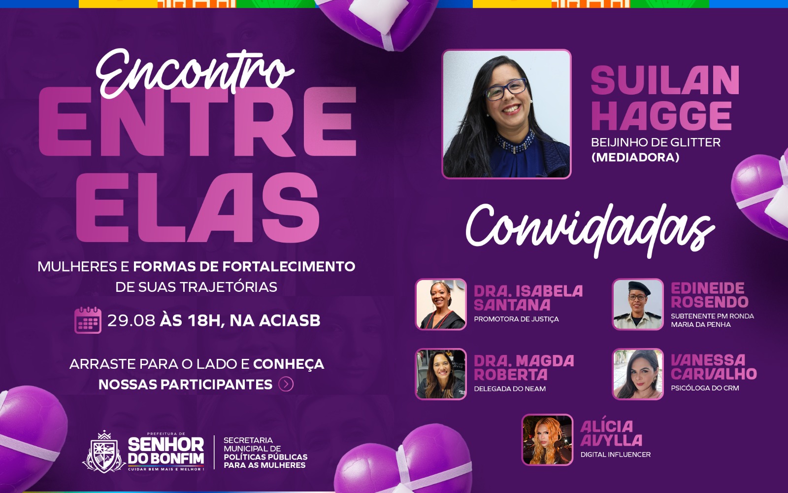 Participe! Sua presença é fundamental nessa construção de caminhos mais justos e igualitários para todas. Dia 29/08/25 (Sexta-feira), às 18h, na ACIASB – Associação Comercial de Senhor do Bonfim.
